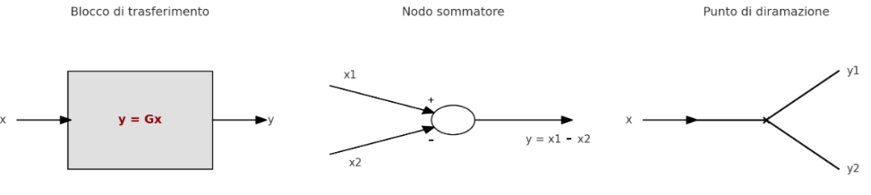 Gli schemi a blocchi usano tre elementi fondamentali.
