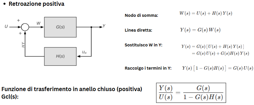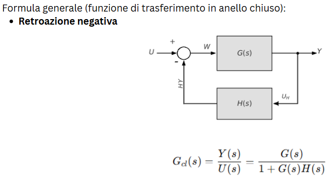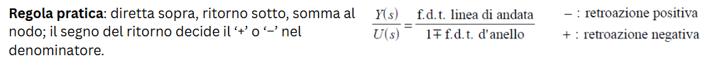 Se, invece, il ramo di ritorno entra col segno meno al nodo, parliamo di retroazione negativa: è quella che stabilizza, riduce l’errore e rende il sistema meno sensibile a parametri incerti.